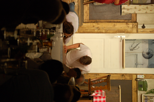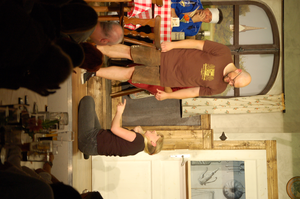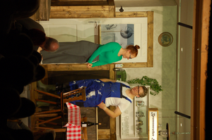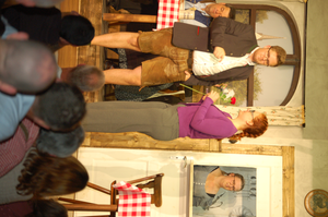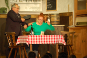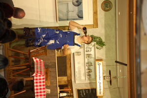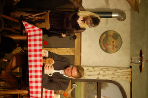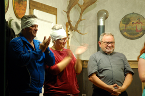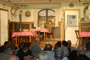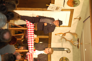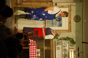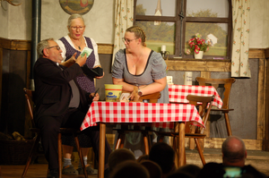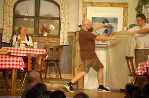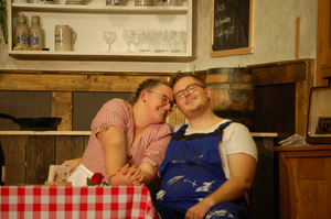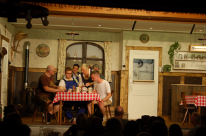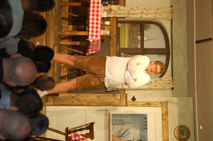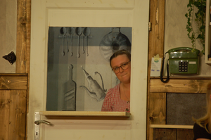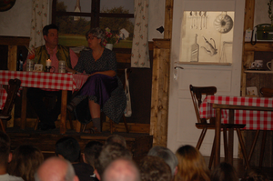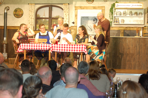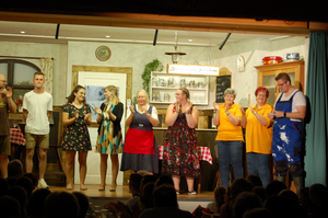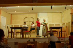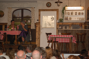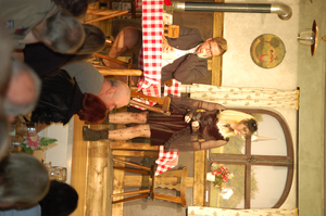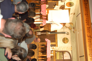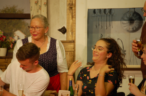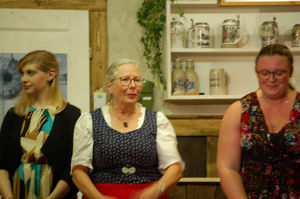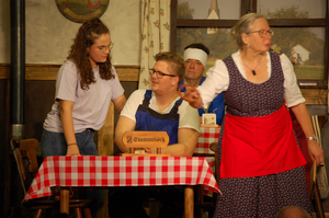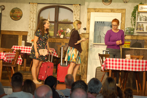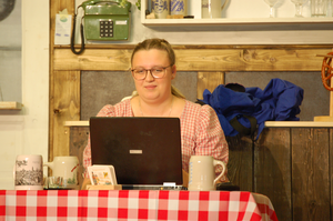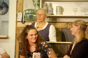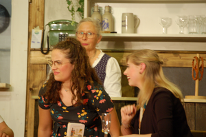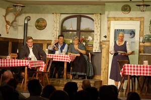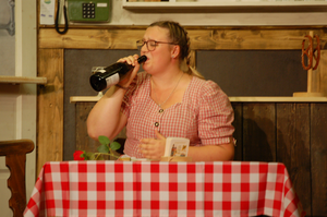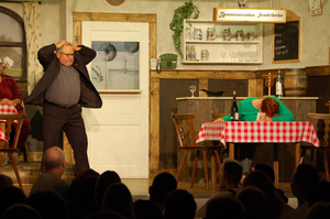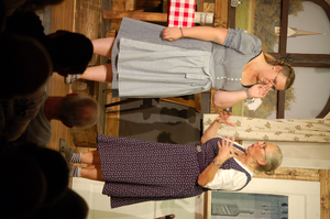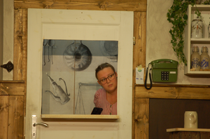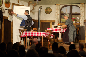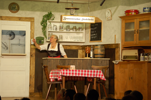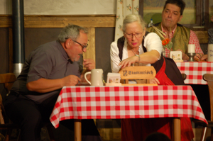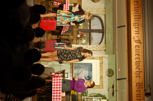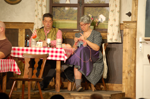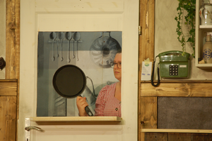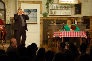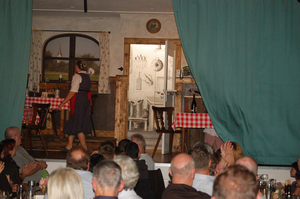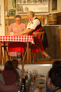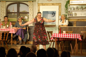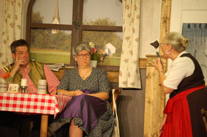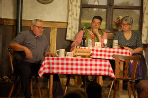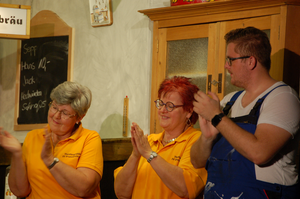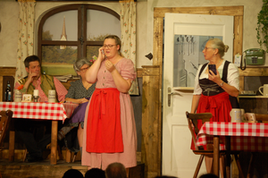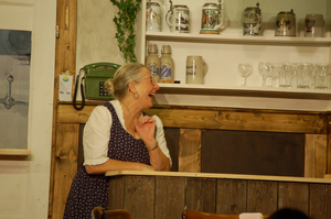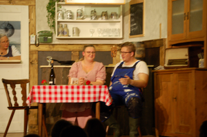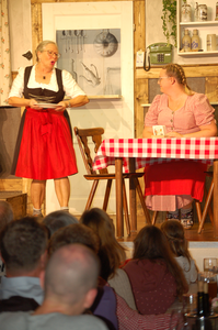 Die Köchin Erna verfolgt mit der Wirtin Monika das Spiel und beide versuchen, den Verlauf zu